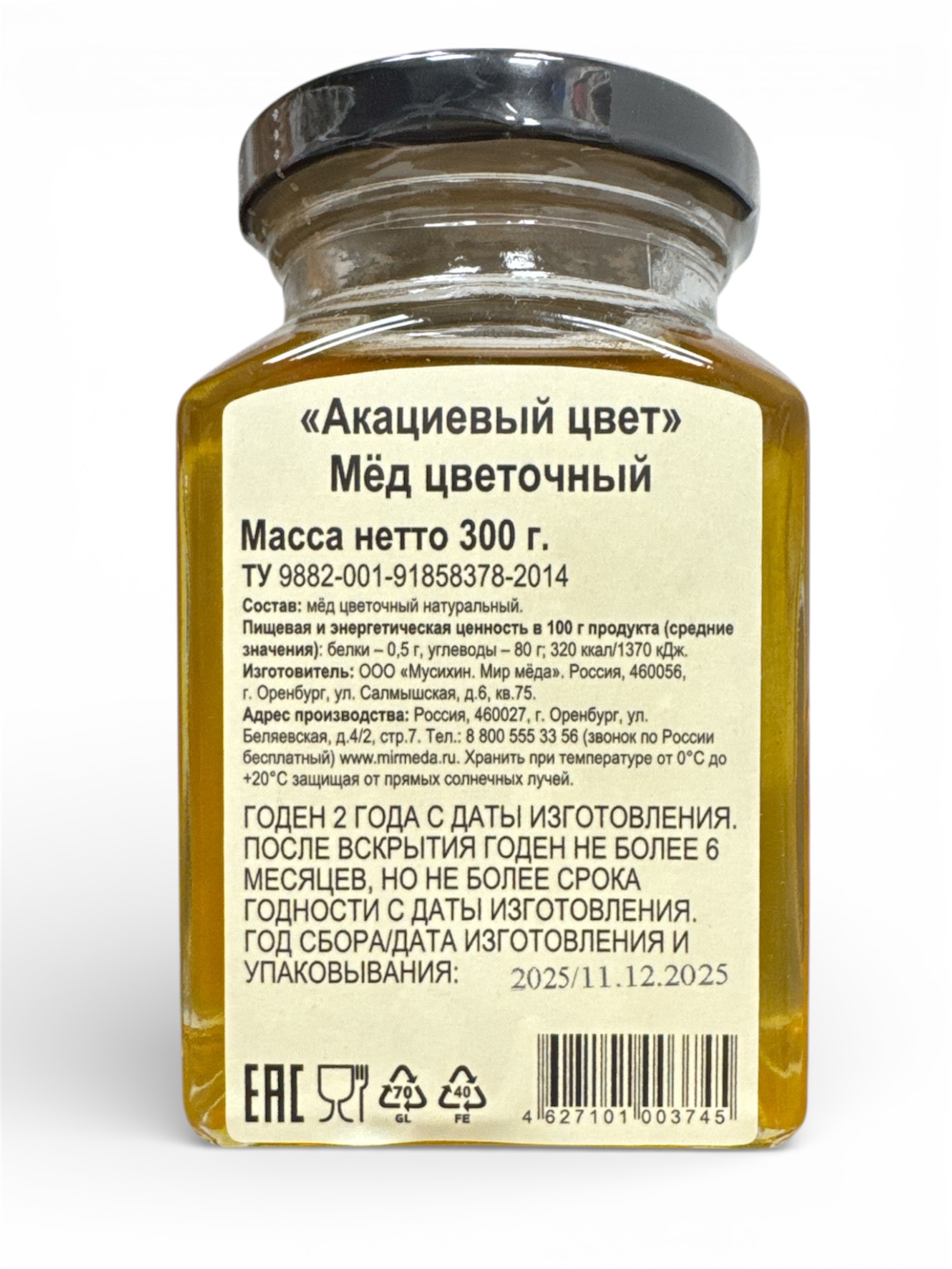 | Производитель | ООО "Мусихин. Мир мёда", 460056, РФ, г. Оренбург, ул. Салмышская, 6 кв. 75 |