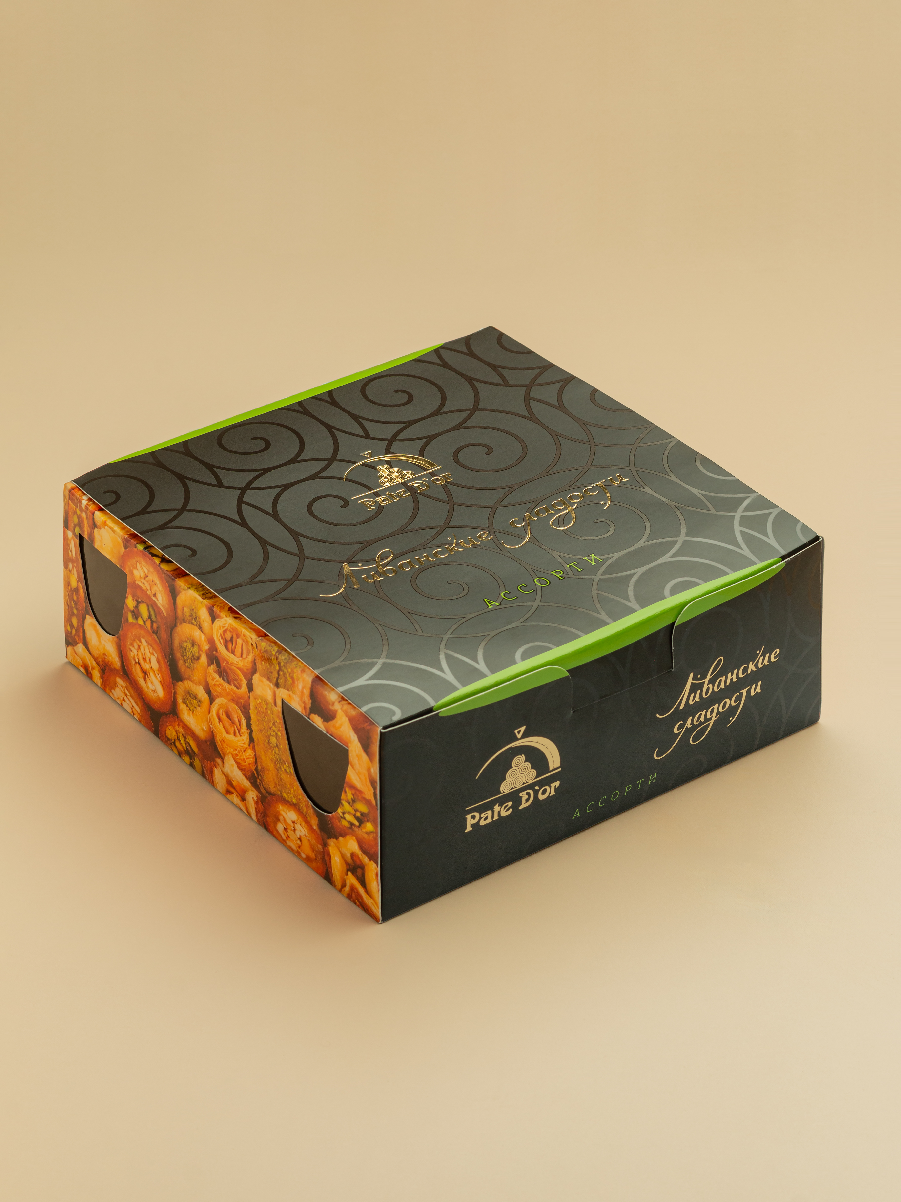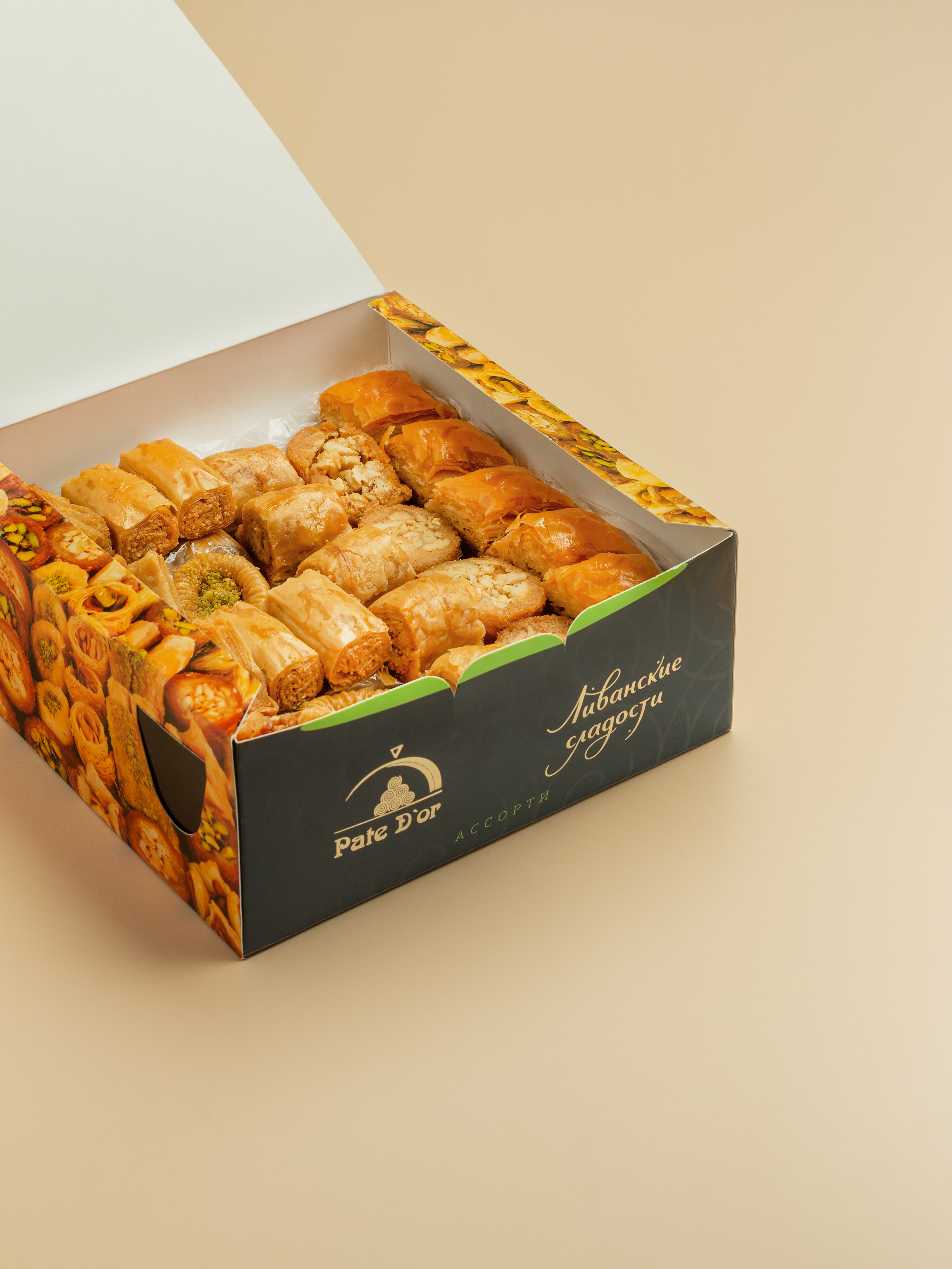 Элегантные ливанские сладости ассорти "Pate D'or". Натуральный и абсолютно безопасный продукт. В составе только полезные провианты без добавления вредных веществ. Праздничная упаковка станет превосходным подарком к любому торжеству. Она хранит в себе уникальные сладости, приготовленные ручным способом, пронизанным нежным сиропом. Печенье – нежнейшее совершенство, которое обволакивает бархатистым удовольствием и романтичным послевкусием. Лакомство наполнит чаепитие сказочными впечатления и волшебным настроением. Стоит только открыть коробочку, как хищные взгляды будут таиться рядом с ней. Угощение таит в себе доброту, ласку и счастье. Выражайте свои эмоции и наилучшие пожелания с волнующим десертом, который придется по вкусу каждому, даже самому настоящему гурману. Приятного аппетита!