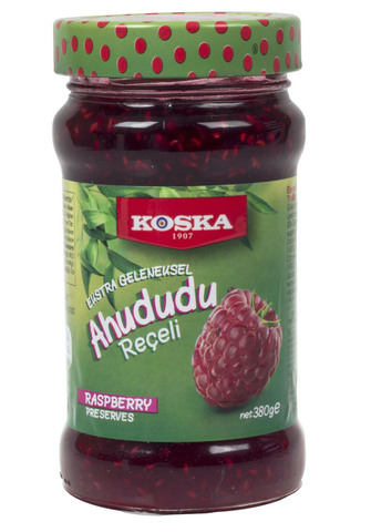 Состав: глюкозный сироп (кукуруза, пшеница, вода), малина (45%), сахар, желирующий агент (пектин), регулятор кислотности (лимонная кислота).