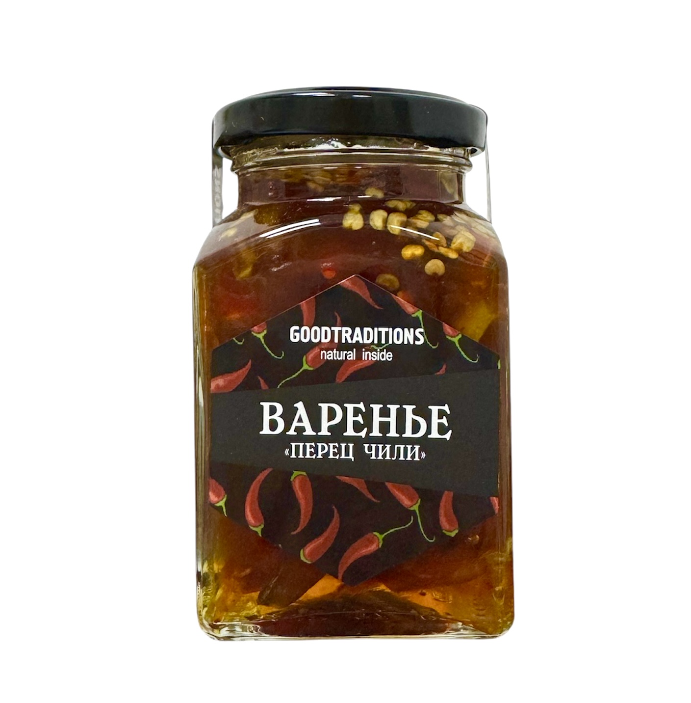 Перед вами варенье «Добрые традиции» из перца чили. Многие будут ошеломлены данными вареньем, но мы советуем дочитать до конца. Несмотря на свой острый вкус, перец чили очень полезен для нашего здоровья. Регулярное употребление перца чили снижает риск онкологических заболеваний и развития сахарного диабета. Перец чили испепеляет вирусы и микробы в таком случае, что благоприятно воздействует на скорейшее выздоровление. Варенье «Добрые традиции» из перца чили станет любимым лакомством любителей острого. Состав нашей варенья не содержит ничего лишнего. Его можно есть с мясом, кремами и даже мороженым. Украсьте свои блюда сладкой перчинкой! Приятного аппетита!