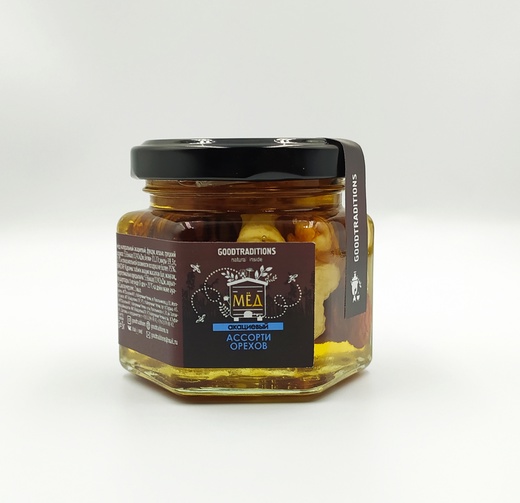 Состав: мед акациевый, грецкий орех, кешью, фундук.