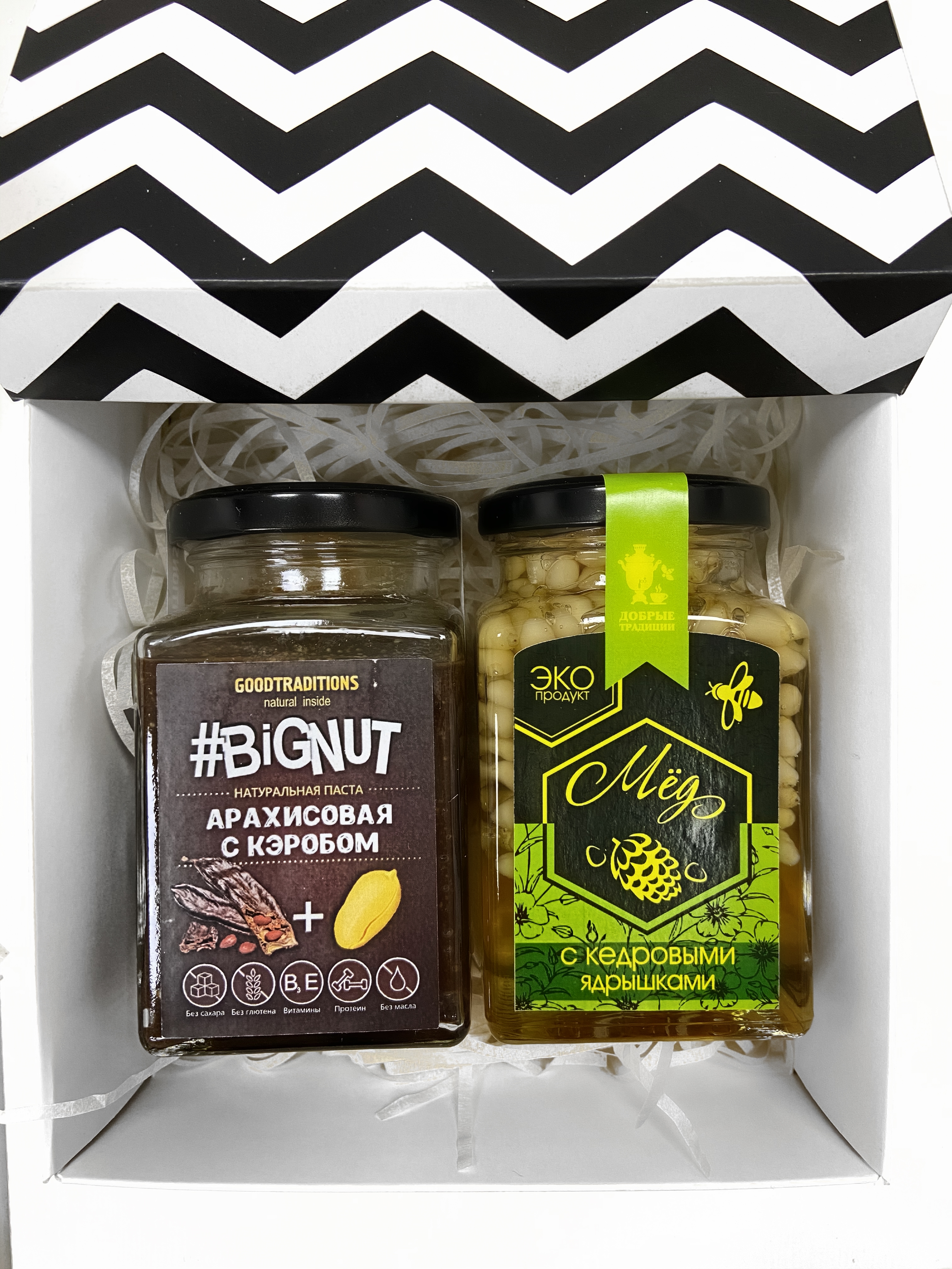 Арахисовая паста с кэробом, акациевый мед с кедровыми орехами