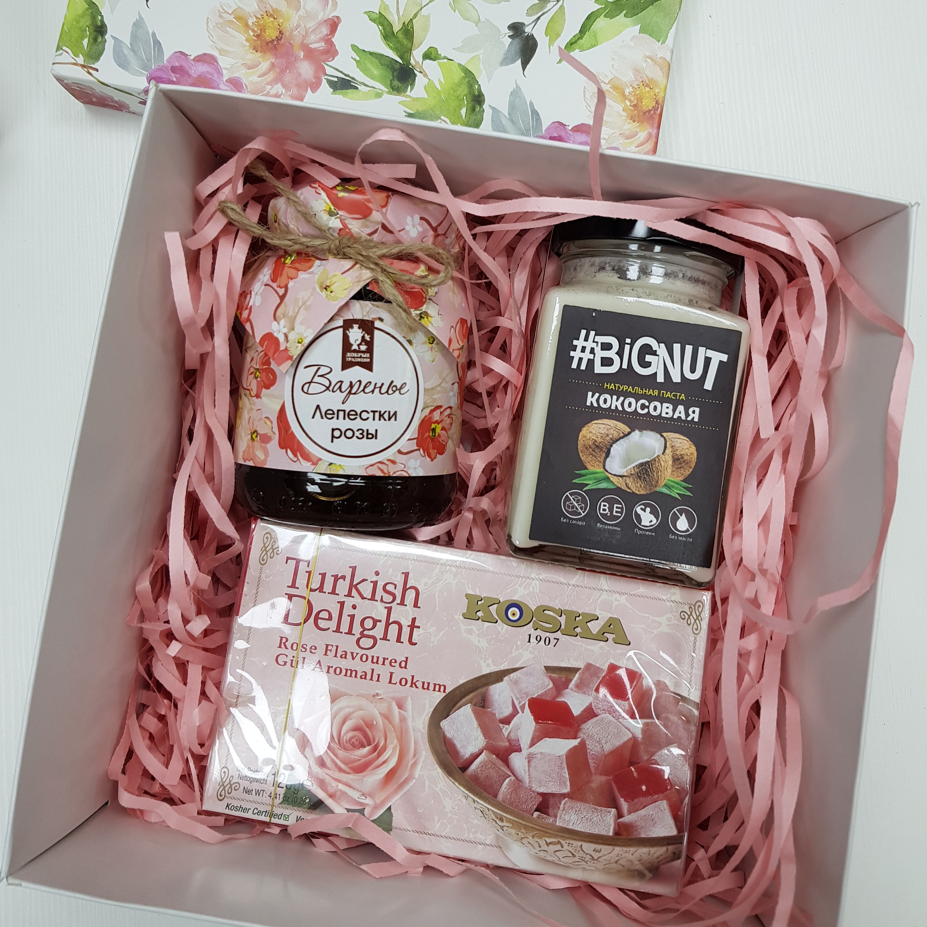 Кокосовая паста, лукум с ароматом розы, варенье из лепестков роз.