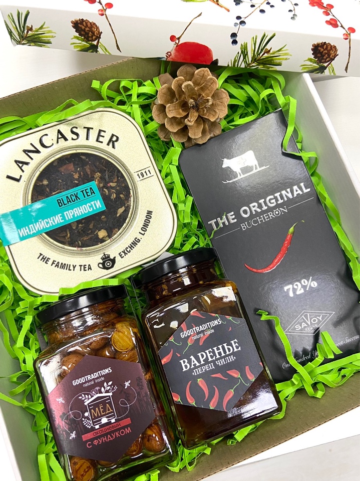 Индийский чай со специями, варенье из перца чили, мёд с фундуком, горький шоколад с перцем чили.