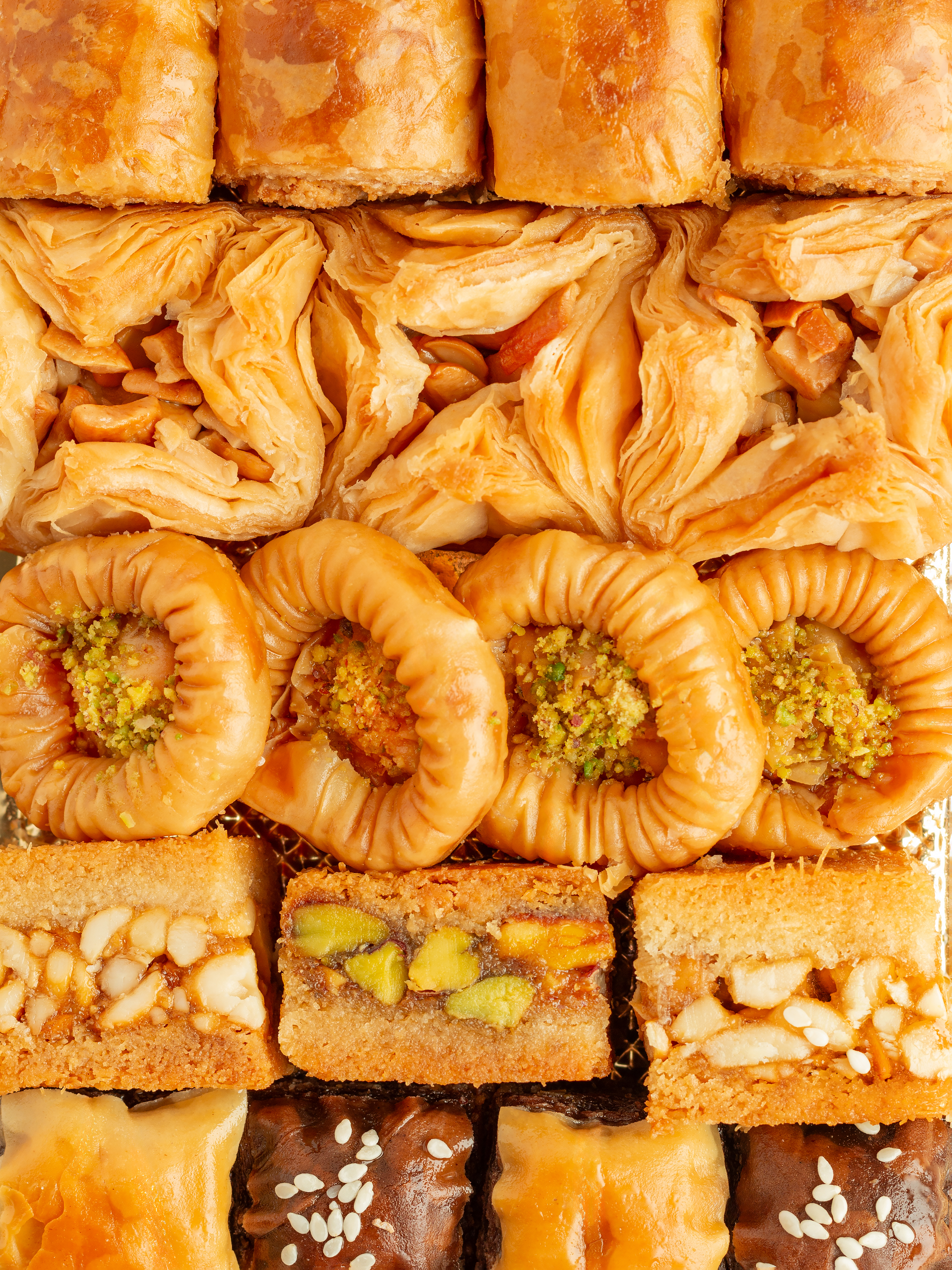 Состав набора: осмалия с фисташками, осмалия с кешью, козинаки из кунжута, козинаки из арахиса, роза с кешью, ракушки, пальчики, баклава шоколадная, грекорех.