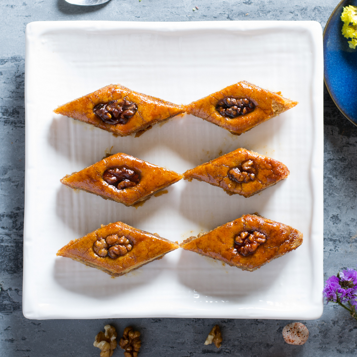 Пропитанная беззаботным ароматом детства пахлава «Pate D or» бакинская. Абсолютно натуральный продукт без добавления вредных добавок. Сладость изготовлена из нежнейшего слоеного теста, политая патокой с ароматными специями и пронизанная кусочками изысканных молотых орехов. Каждый кусочек лакомства окунет в беспечные воспоминания и райские мечты. Роскошный аромат и непревзойденный вкус просто тает во рту, никого не оставляя равнодушным к такому печенью. Приобретите маленькую коробочку угощения, пригласите родных, заварите вкусный чай, достаньте давно пылившиеся в полке фотоальбому и окунитесь в приятные воспоминания. Десерт станет идеальным поводом для частых встреч. Приятного аппетита!