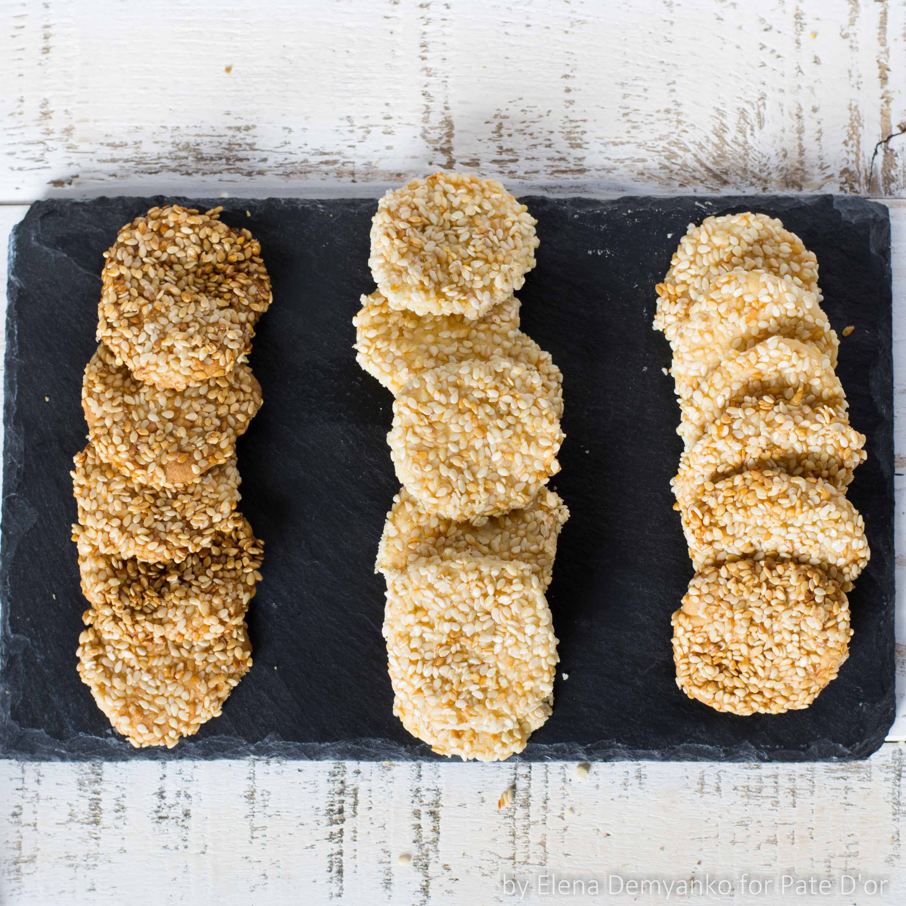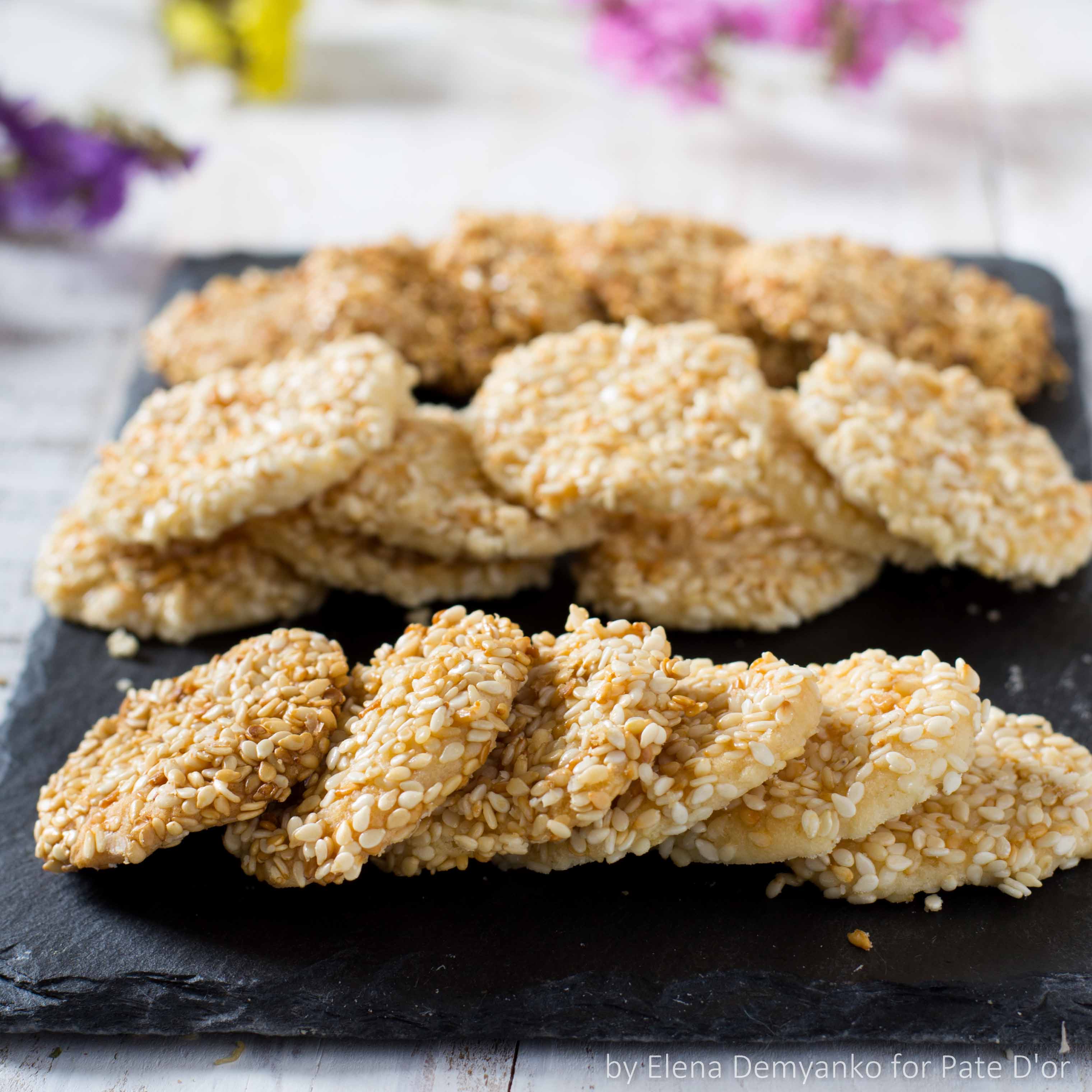 Хрустящее песочное тесто, щедро посыпанное обжаренными кунжутными семенами. Идеально подходит к терпкому чаю и ароматному кофе со специями.