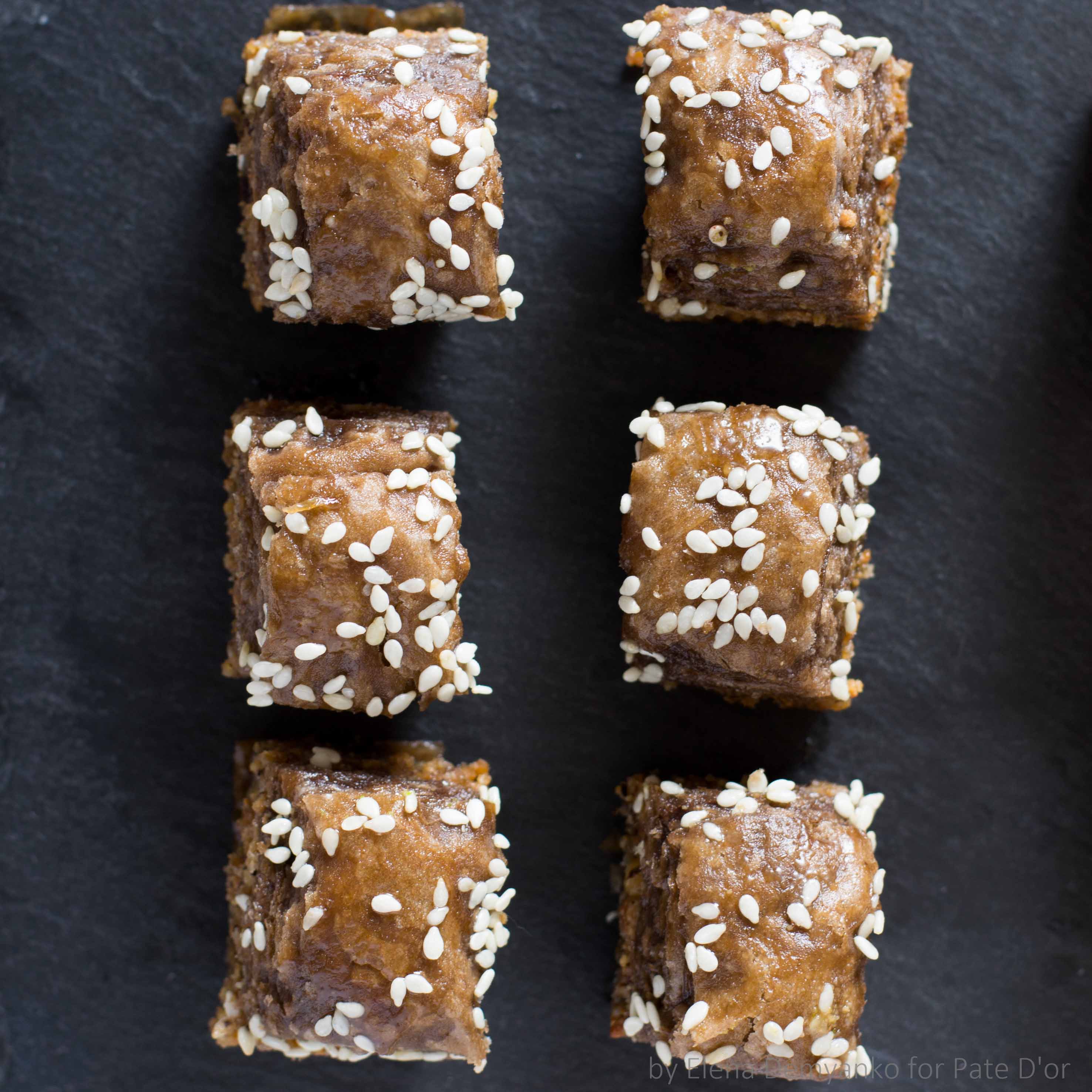 Воздушное тесто фило, пропитанное сахарным сиропом с пряностями в сочетании с начинкой из тертого фундука.