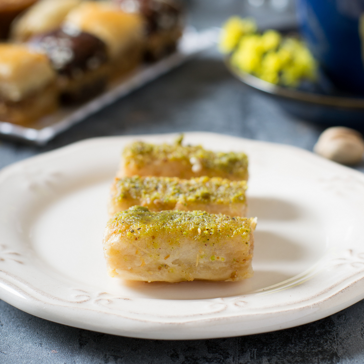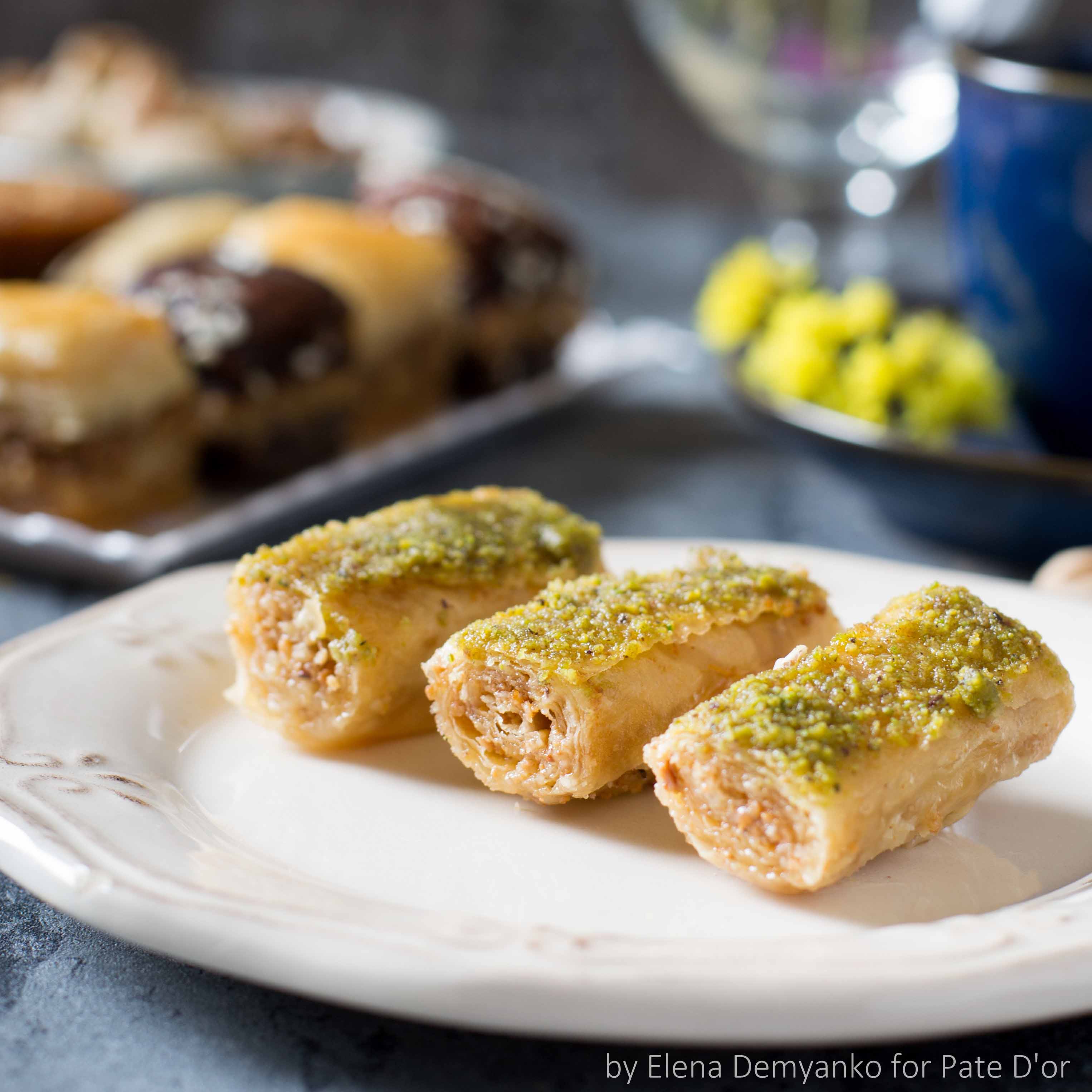 Пропитанное сахарным сиропом, нежное воздушное многослойное тесто фило в сочетании с ореховой начинкой.