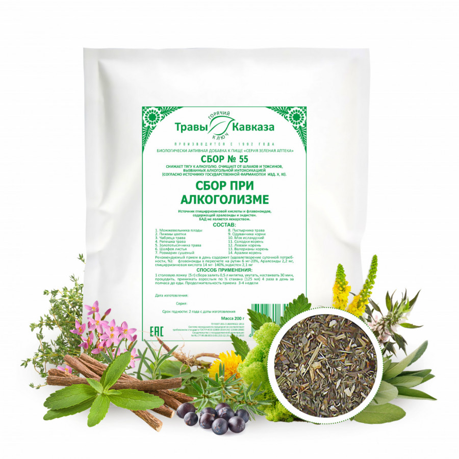 Сбор Травы Кавказа при алкоголизме № 55, 200 гр