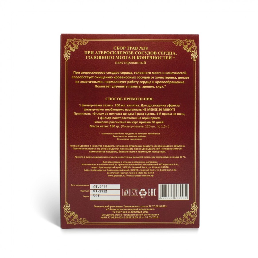 Травяной сбор №38 создан для мягкой и комплексной поддержки сосудистой системы. Он способствует очищению артерий, укреплению стенок сосудов и улучшению работы сердца и головного мозга. Благодаря тщательно подобранному составу из 15 лекарственных растений, сбор помогает улучшить память, слух, зрение и общее самочувствие.