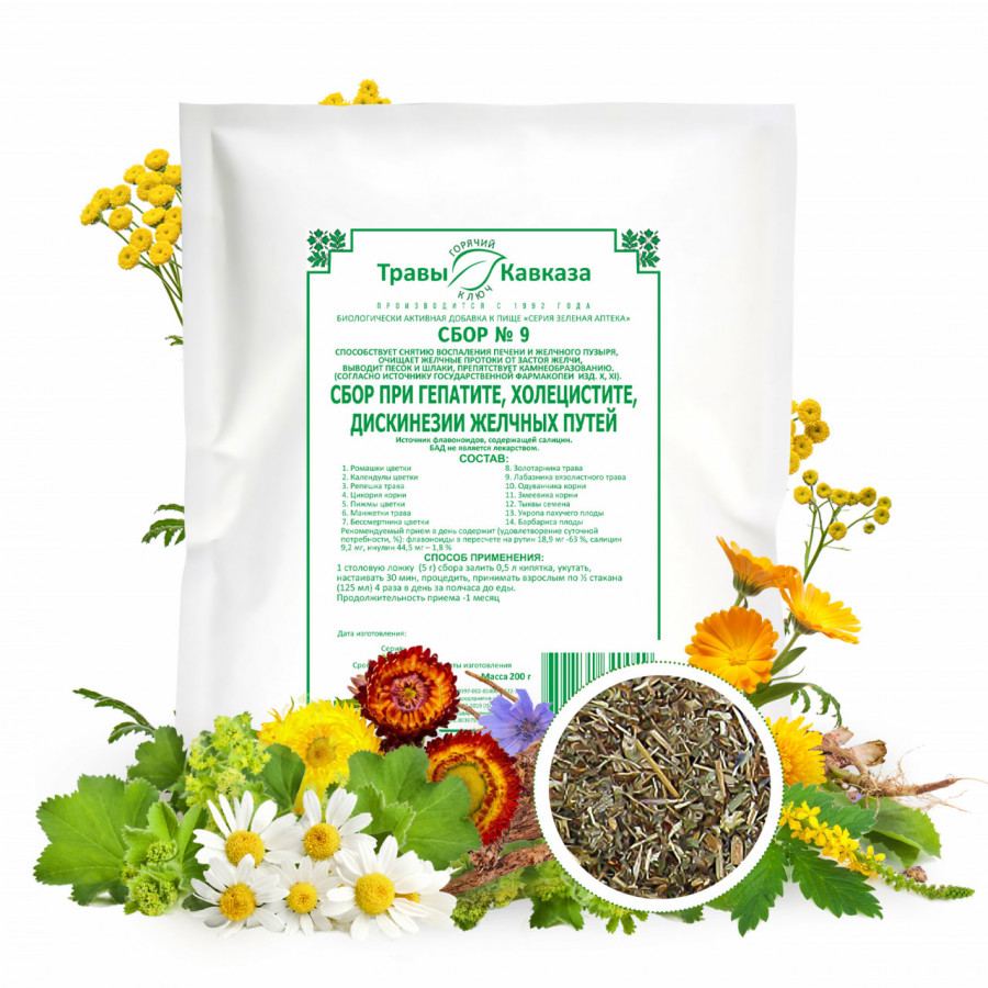 Сбор Травы Кавказа при гепатите, холецистите, дискинезии желчных путей № 9, 200 гр