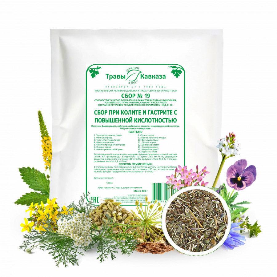 Сбор Травы Кавказа при колите и гастрите с повышенной кислотностью № 19, 200 гр