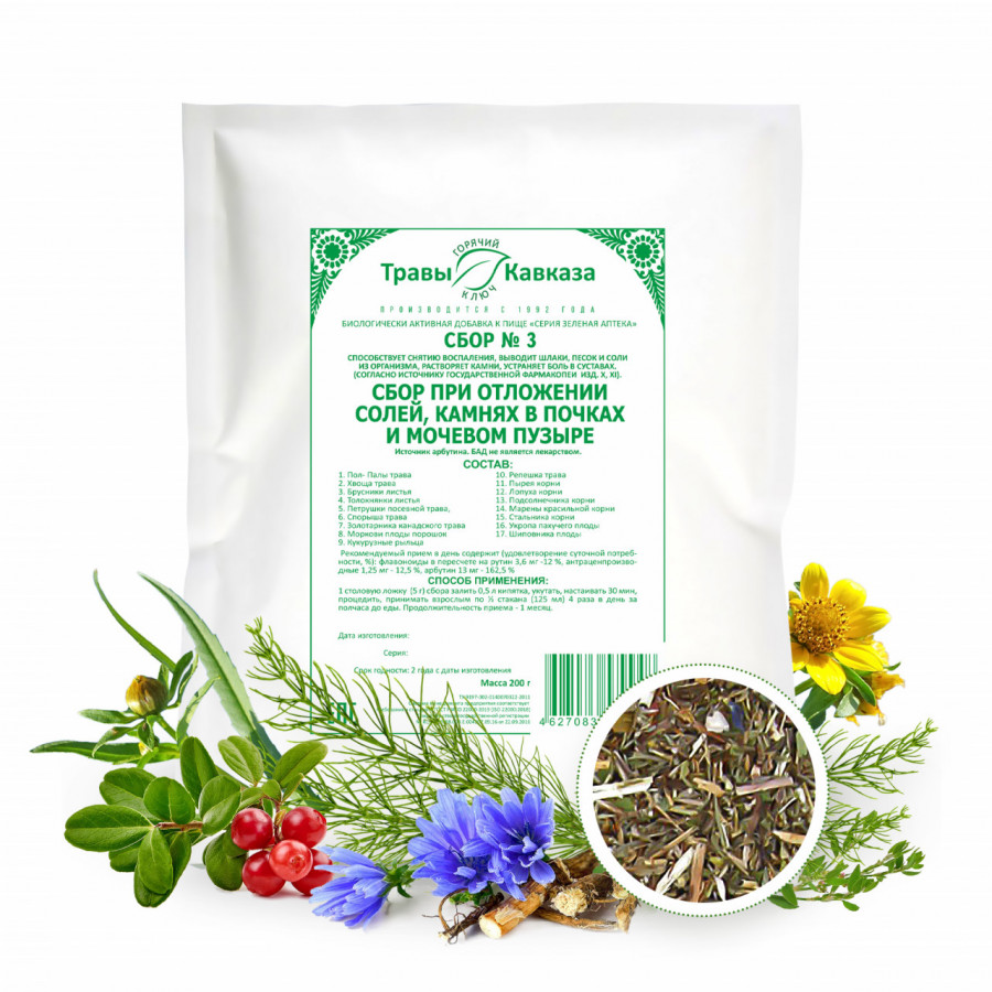 Сбор Травы Кавказа при отложении солей, камнях в почках и мочевом пузыре №3, 200 гр
