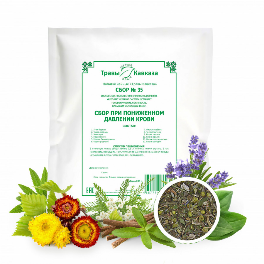 Сбор № 35 создан из дикорастущих трав, собранных вручную в экологически чистых районах предгорий Кавказа. Уникальная технология сушки сохраняет все полезные свойства растений. Он идеально подходит для тех, кто стремится естественным образом улучшить свое самочувствие и повысить давление без синтетических препаратов.