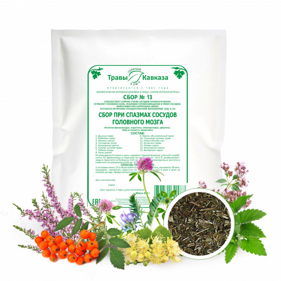Сбор Травы Кавказа при спазмах сосудов головного мозга №13, 200 гр