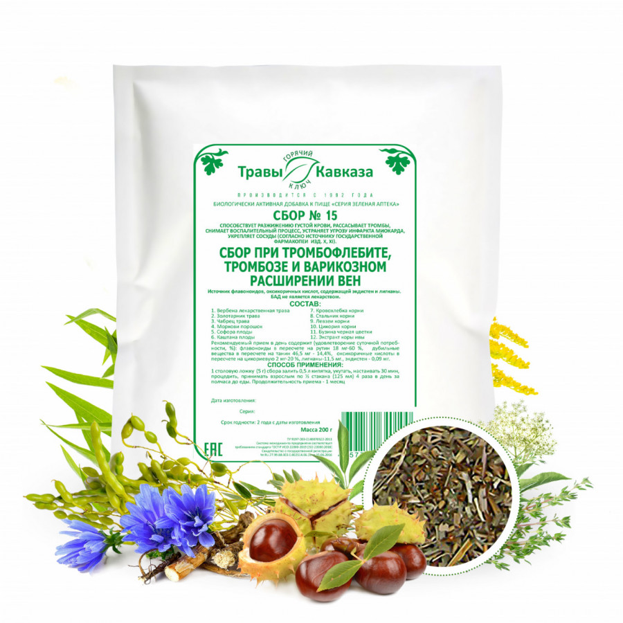 Сбор Травы Кавказа при тромбофлебите, тромбозе и варикозном расширении вен №15, 200 гр