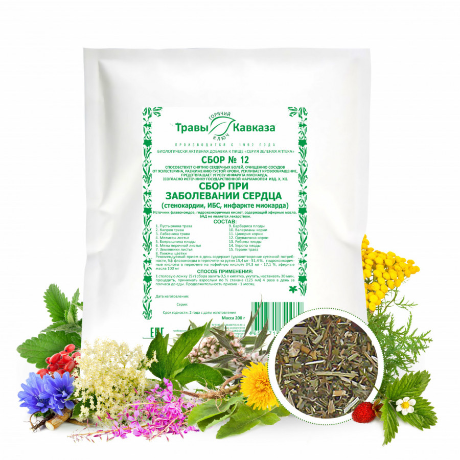 Сбор Травы Кавказа при заболеваниях сердца №12, 200 гр
