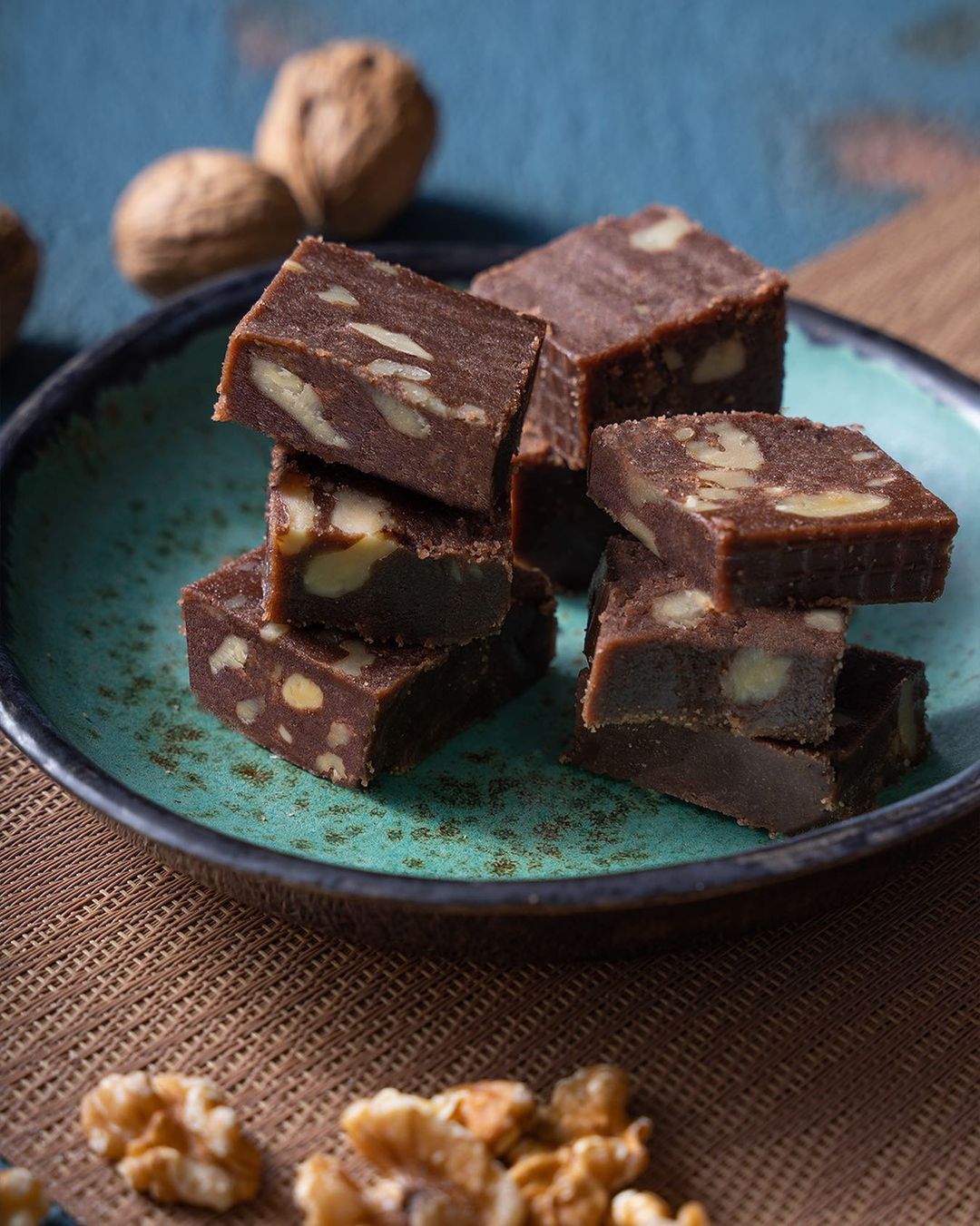 Состав: манная крупа (пшеница), кунжутная паста, греческий орех 10%, глюкозы, растительное масло (кукурузное), какао-порошок, ароматизатор (ванилин), регулятор кислотности (лимонная кислота). Содержит семена кунжута, глютена и грецкого ореха. Также можно сохранить фундук, фисташки и миндаль.